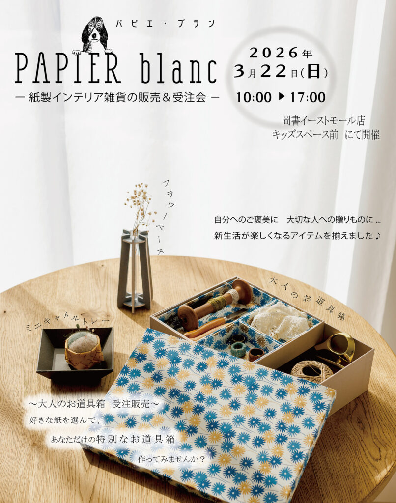 「PAPIER blanc 紙製インテリア雑貨の販売&受注会」1日限定の催事出店を行います。